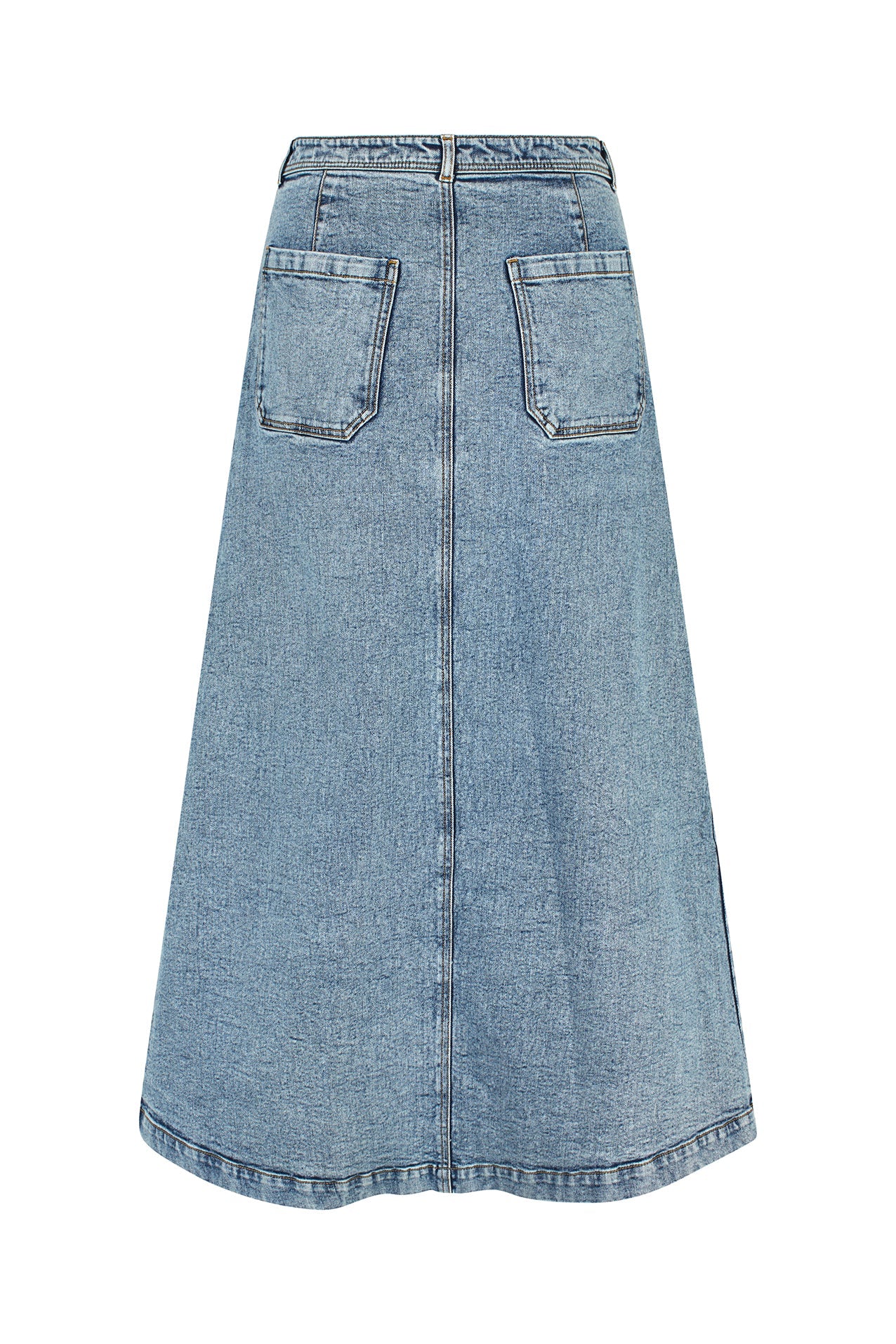 De Luna Maxi Skirt in Blue van Lollys Laundry is een elegante A-lijn rok die comfort en stijl combineert. Perfect voor zowel casual als chic outfits, met een flatterende maxi-lengte en strakke taille.