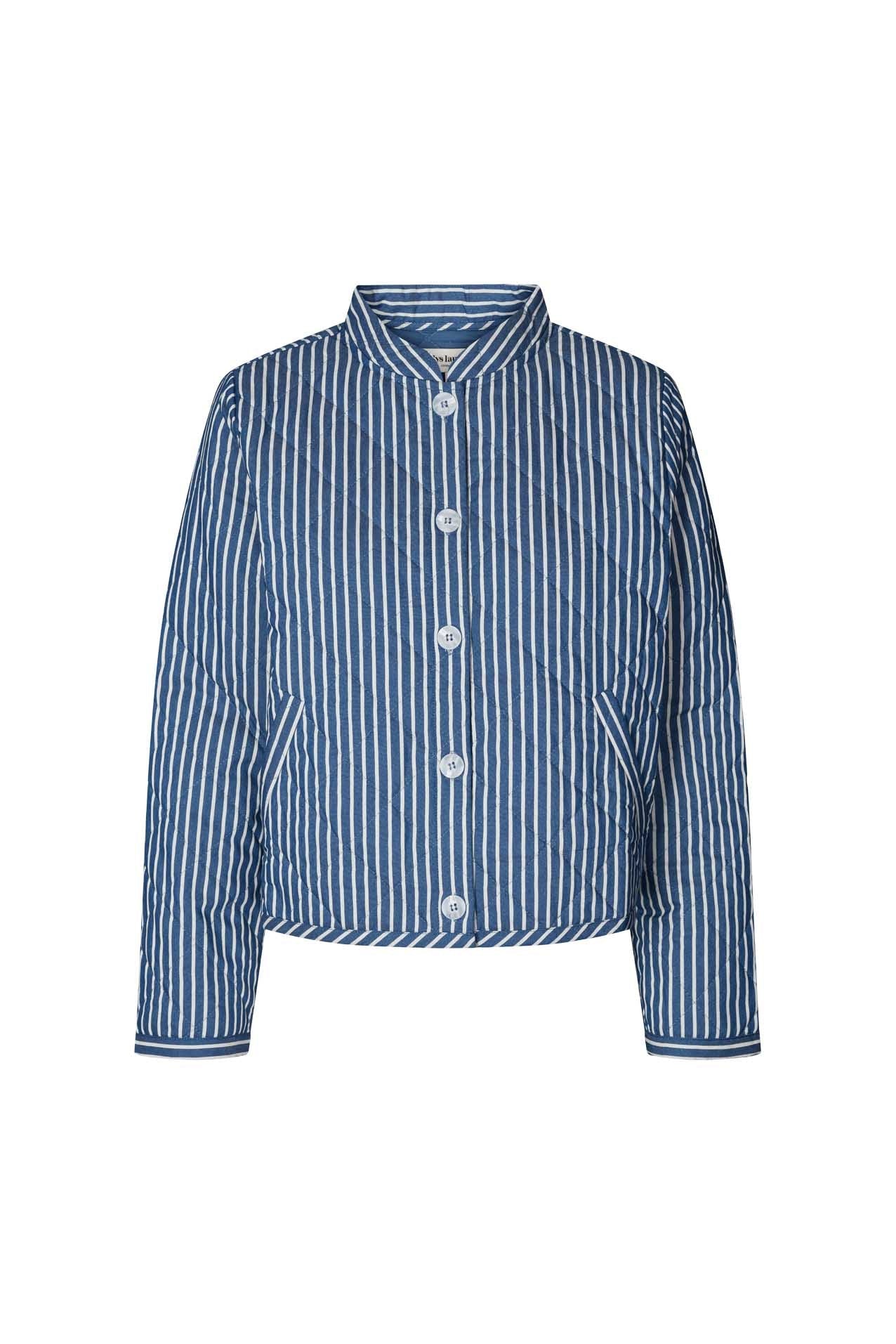De Emilia -jas is een van Lolly's absolute favorieten en een bestseller in alle leeftijdsgroepen. Met zijn gewatteerde ontwerp, klassieke blauwe strepen en vrouwelijke snit, is het een must-have in je garderobe-de jas waar je altijd naar terugkeert. • Klassieke blauwe/witte strepen voor een tijdloze look